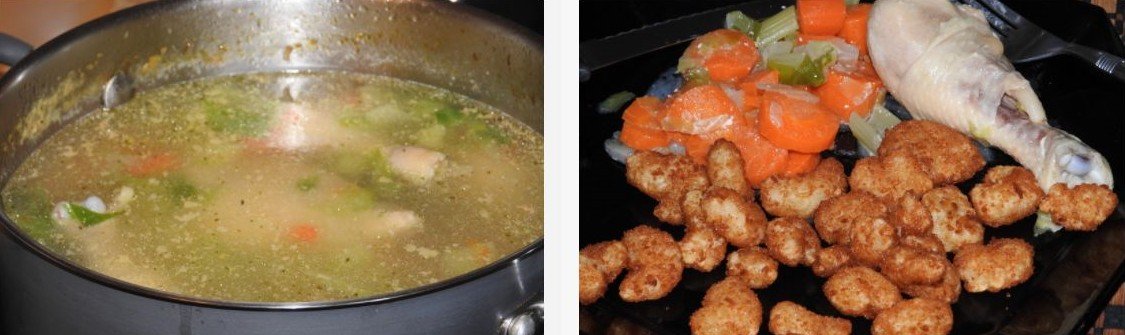So you made that soup, now you need to do something with that soup-chicken. These pages show what I did with some of them. You can serve soup-chicken with whatever you want. I will often serve the soup-vegetables right there with that chicken, but something extra is not unthinkable.