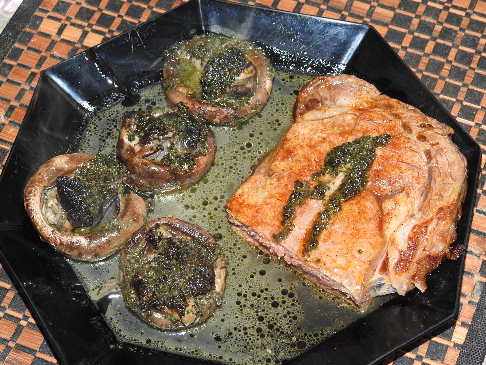 INGREDIENTS This is what you need for 2 servings: 1 dozen escargots 1 dozen large button mushrooms 1 stick butter parsley, preferably fresh 1-2 garlic cloves S&P, seasoning